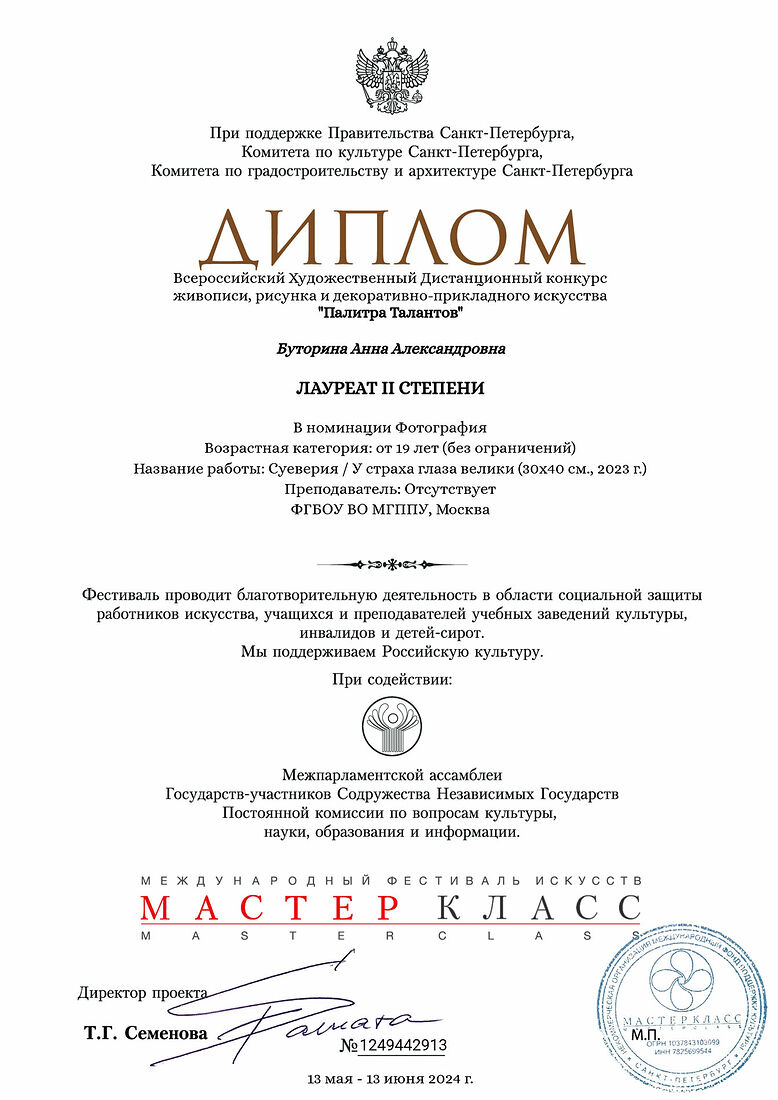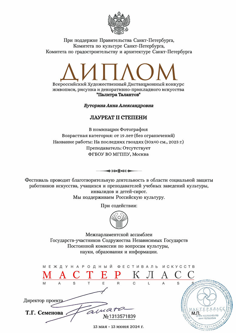 All-Russian art competition "Palette of Talents". Diploma of the II degree laureate
